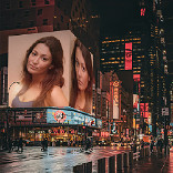 Add your photo to a large digital billboard in Times Square on a rainy night. Neon lights, reflections on wet streets, and a busy NYC atmosphere give the scene a realistic city feel. The effect supports one or two photos, letting you create either a single billboard or a multi-image display. Ideal for portraits or creative edits that look like real outdoor advertising in New York.